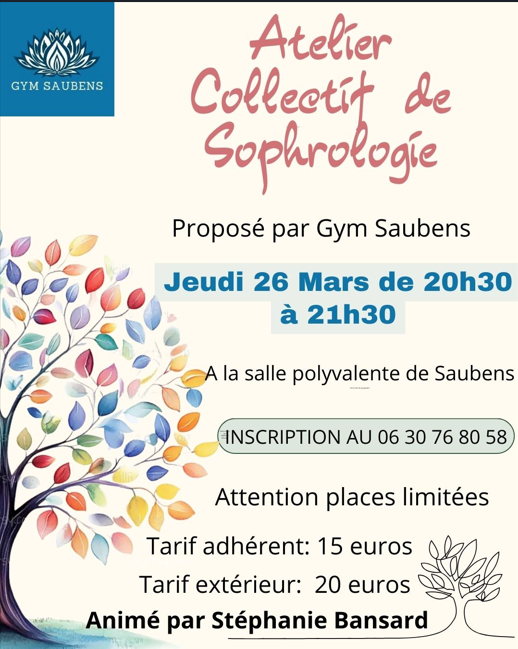 Le jeudi 22 janvier un atelier de sophrologie est organisé à 20h30