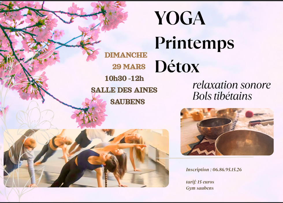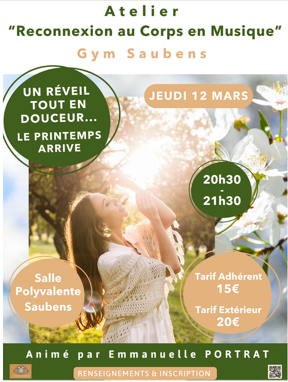 le dimanche 20 octobre une matinée bien-être de 9h30 à 12h45 pour laquelle les inscriptions se font auprès de contact@gym-saubens.fr